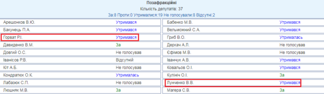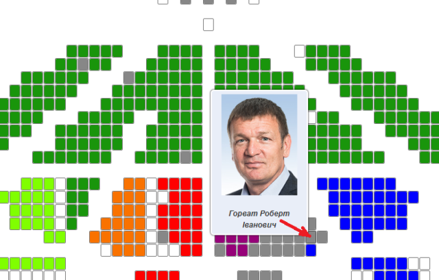 Судя по схеме рассадки депутатов, Хорват «кнопкодавил» и за другого закарпатского внефракционного мажоритарщика — Валерия Лунченко.