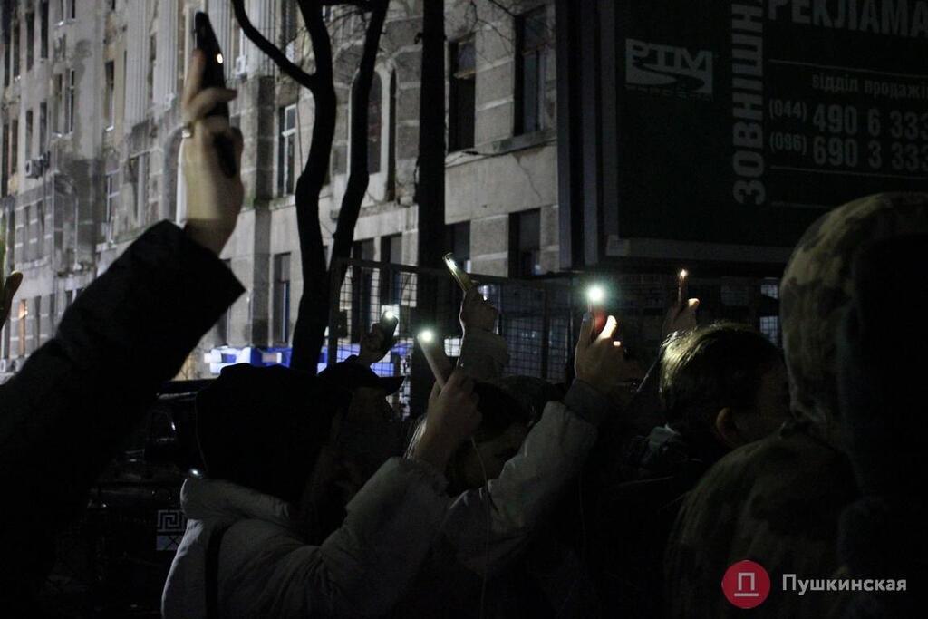 Одесские студенты, активисты и родственники погибших собрались на углу улиц Пушкинской и Троицкой – под стенами сгоревшего колледжа экономики, права и гостинично-ресторанного бизнеса
