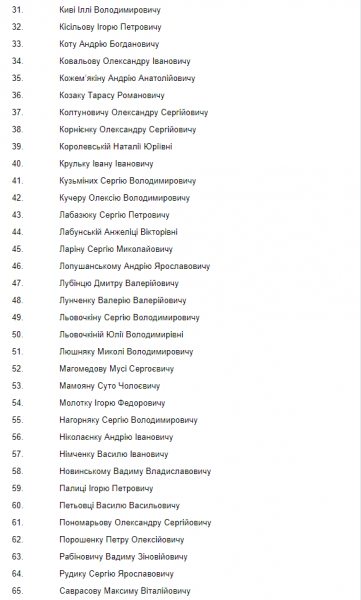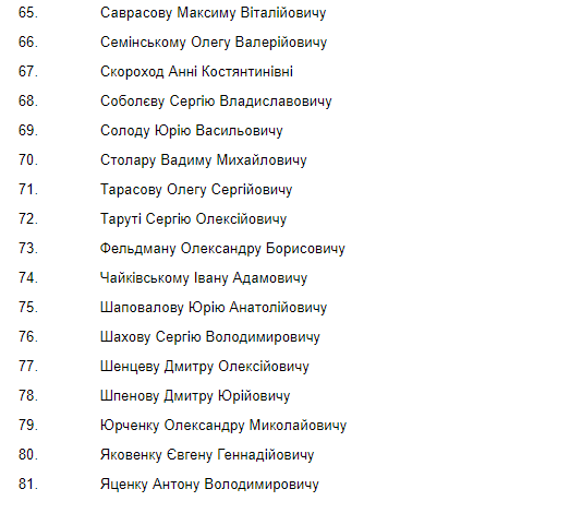 Так, в перечень этих парламентариев вошли нардепы от фракции "Слуга народа" Максим Бужанский и Александр Дубинский, представители "Оппозиционной платформы - За жизнь" Юрий Бойко, Илья Кива, Вадим Новинский, Сергей и Юлия Левочкина, Наталья Королевская, Вадим Рабинович, нардепы от "Батькивщины" Сергей Соболев и Ольга Белькова, депутат от "Евросолидарности" Петр Порошенко, ныне внефракционная Анна Скороход и тому подобное.