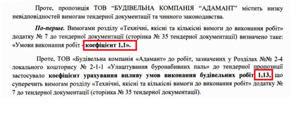 12 декабря это предприятие подписало договор на проведение противооползневых работ со строительной компанией «Адамант». Эту закупку можно было бы считать образцово-показательной. Контракт подписан на 125 млн грн при ожидаемой стоимости 138 млн грн, а на сам тендер по строительству комплекса противооползневых сооружений для укрепления склона по ул. Лукьяновской 46 в Шевченковском районе Киева, объявленный 20 сентября, подало заявку аж пять претендентов: ООО «Альтис-констракшн», ООО “Мост-девелопмент”, ООО “Спецпідземінжбуд” и ООО “Мегаполис БК” и ООО “Строительная компания “Адамант”.