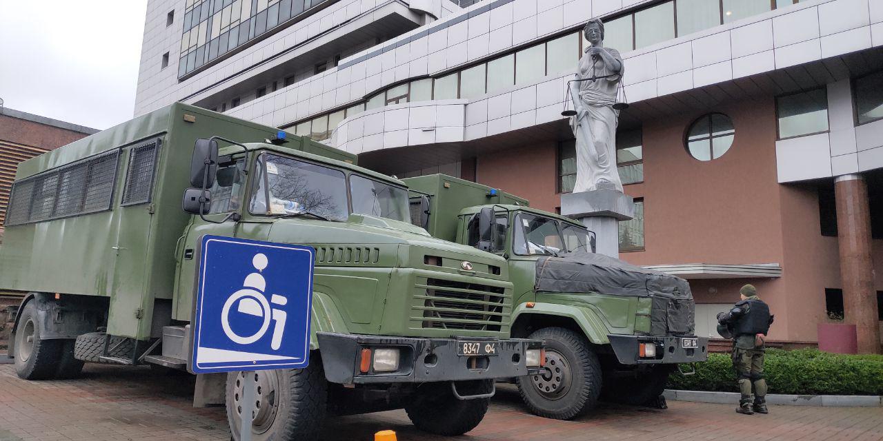 Під будівлею суду патрулюють щонайменше п’ять одиниць спецтехніки та близько сотні правоохоронців.