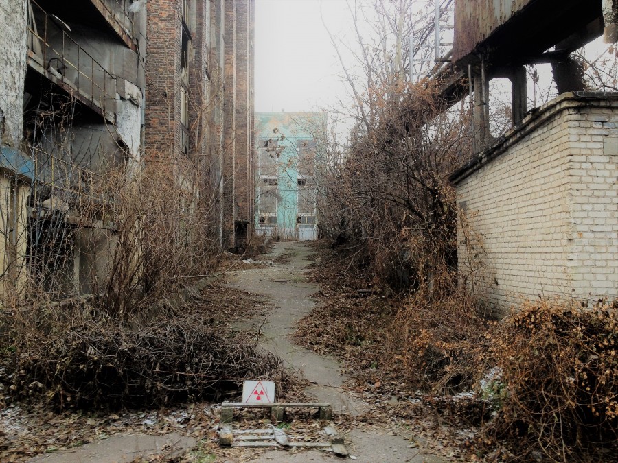 Те цеха, в которых обогащали уран, сейчас просто заброшены и стоят под открытым небом. Проход на их территорию запрещен, но не мне вам рассказывать, как обходятся эти запреты. В цехах все еще остается радиоактивное оборудование, о которого сильно фонит. Местами дозиметр показывает 500-800 мкр/ч. Но несмотря на это, до сегодняшнего дня никто не удосужился даже заложить кирпичами окна зараженных построек, из которых идет излучение.