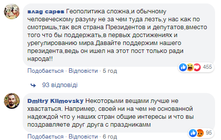 Свое возмущение противники украинского главы оставили под постом о проведенном 31 декабря разговоре, который пресс-служба опубликовала на Facebook-странице Офиса президента.