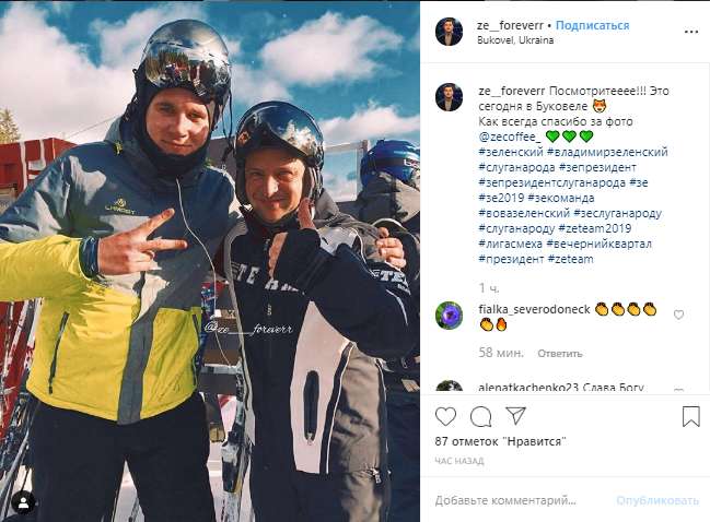 "Посмотритееее!!! Это сегодня в Буковеле. Как всегда спасибо за фото @zecoffee", - подписали снимок с Владимиром Зеленским.