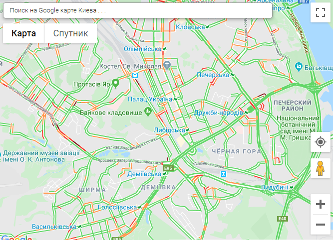По данным онлайн-сервиса Google Maps, пробки образовались на проспекте Победы, проспекте Леся Курбаса, проспекте Валерия Лобановского, на бульваре Тараса Шевченко.