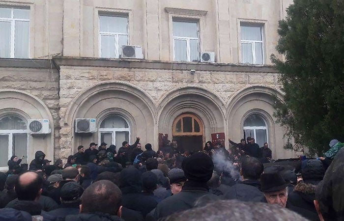 9 января активисты оппозиции в Сухуме атаковали «администрацию президента», требуя, чтобы тот сложил свои полномочия. Они выбили почти все окна на первом этаже здания и несколько десятков человек проникли внутрь, им удалось захватить здание «администрации». В правительственном комплексе также были сняты с петель двери, в кабинетах и коридорах разбросана сломанная мебель и документы.