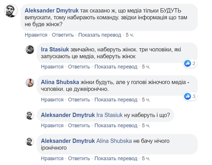 Несогласные также появились среди феминисток, их смущает, что новым медиа будут руководить трое мужчин.