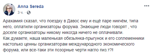Политик Анна Середа задается вопросом “за чей счет банкет”.