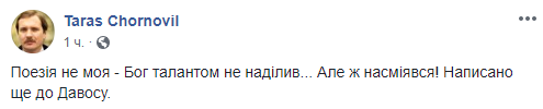 Политик Тарас Чорновил запостил стихи неизвестного автора.