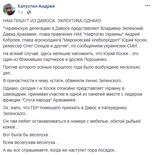 Хоть нянька, хоть соска. Украинцы обсуждают Зеленского в Давосе