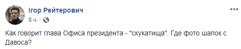 Политолог Тарас Березовец, также находящийся в Давосе, первым сообщил о пустом зале во время выступления украинского президента.