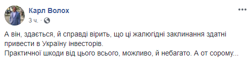 Бизнесмен и политаналитик Карл Волох считает: стыдно думать, что заклинания приведут в Украину инвесторов.