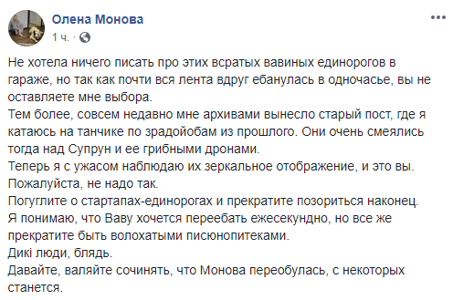 Блогер Олена Монова пишет о единорогах (Зеленский в своем выступлении сравнил Украину с быстрорастущим стартапом – “единорогом”, – ред.).