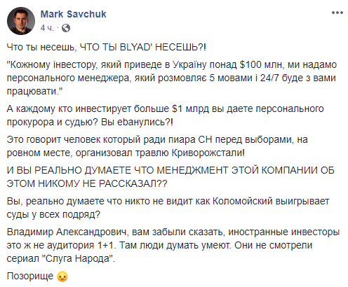 Политический эксперт Соломон Манн в одном из моментов солидарен с комментатором выше, заверяя, что мир бизнеса не верит словам, и только делами можно привлечь в Украину инвесторов.
