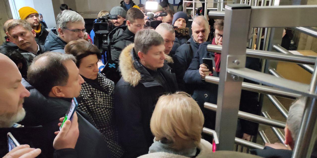 Охорона держустанови не пропустила парламентарів «ЄС». У приміщення держустанови зміг потрапити лише Петро Порошенко і його адвокати, якого викликали у справі підписання «мінських домовленостей».