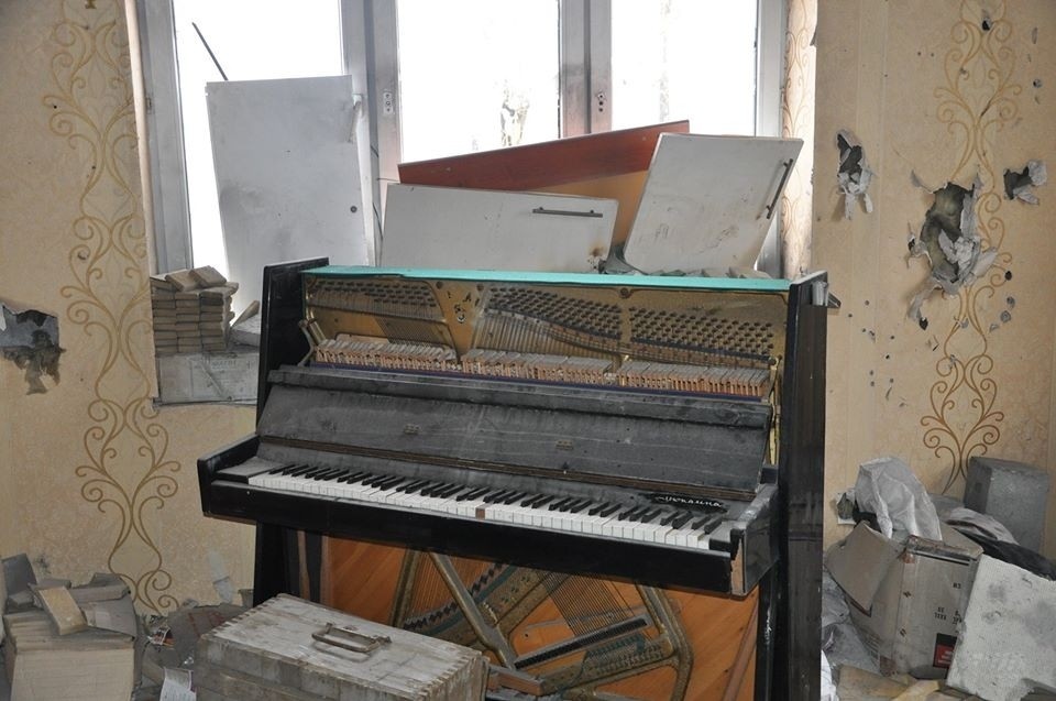 На снимках показаны обгоревшие остатки разрушенных домов, ржавый остов автомобиля, разрушенные комнаты ранее роскошных особняков.