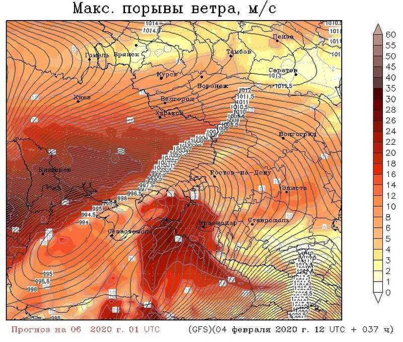 "Неофициальный прогноз максимальной скорости ветра на 5-6 февраля в связи с прохождением активного циклона. Второй уровень опасности выдал для Одесской, Николаевской областей, а также юго-востока Молдовы. Здесь порывы северного/северо-восточного ветра могут достигать более 25 м/с ночью и утром 6 февраля", – рассказал Кибальчич.