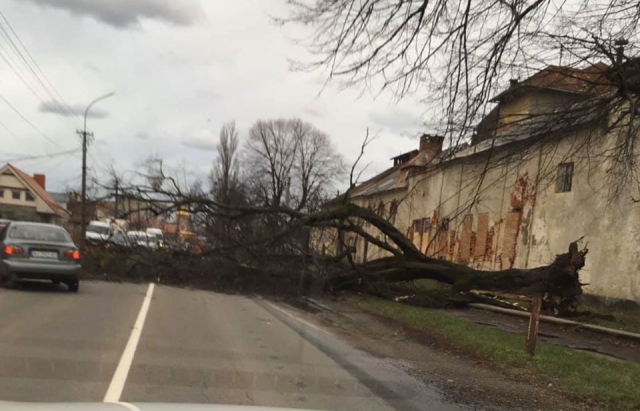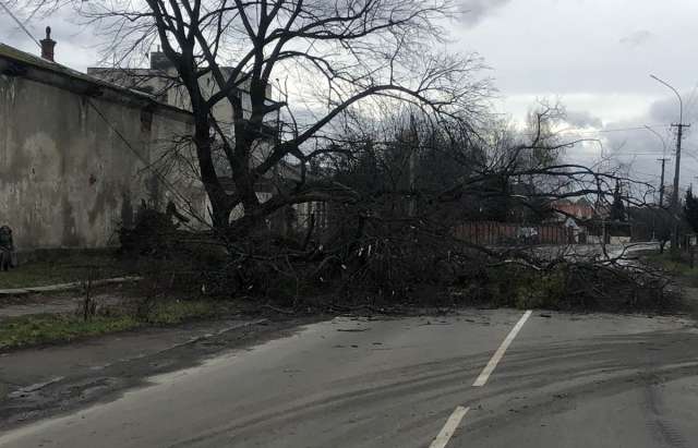 В Мукачево ветер повалил дерево, которое перекрыло улицу возле пивзавода.