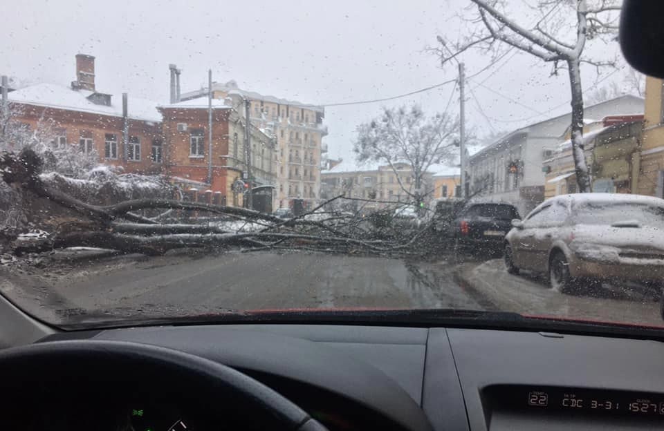 Из-за осложнения погодных условий в Украине страдают водители, на дорогах застревают автомобили, образуются пробки, падают деревья.