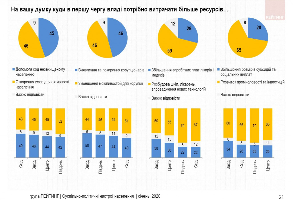 Социологическая группа “Рейтинг” 22-26 января 2020 года провела опрос среди 2500 респондентов старше 18 лет во всех областях Украины (без учета населения АР Крым и оккупированных территорий Донецкой и Луганской областей), в формате личного формализованного интервью (face-to-face). Ошибка репрезентативности исследования: не более 2,0%.