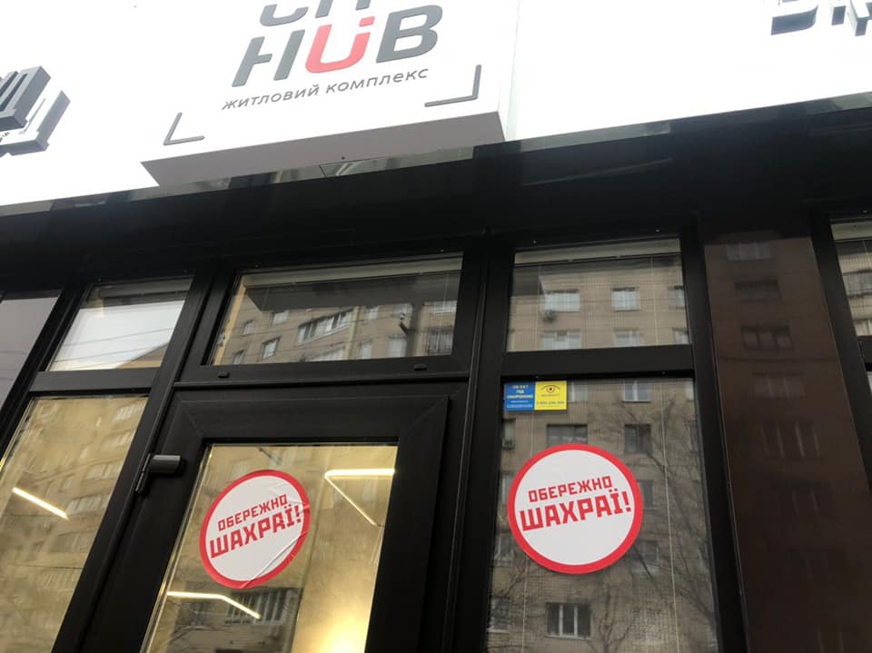 Жители вместе с активистами посетили офис компании «Интергал-Буд» возле территории строительства и требовали объяснений от представителей застройщика.