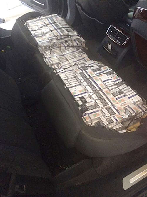 Під час огляду прикордонники спільно з митниками виявили в автомобілі іноземця близько 1500 пачок сигарет з акцизними марками України. Їх сховали в спеціально виготовленому тайнику в задньому бампері і в сидіннях автомобіля.