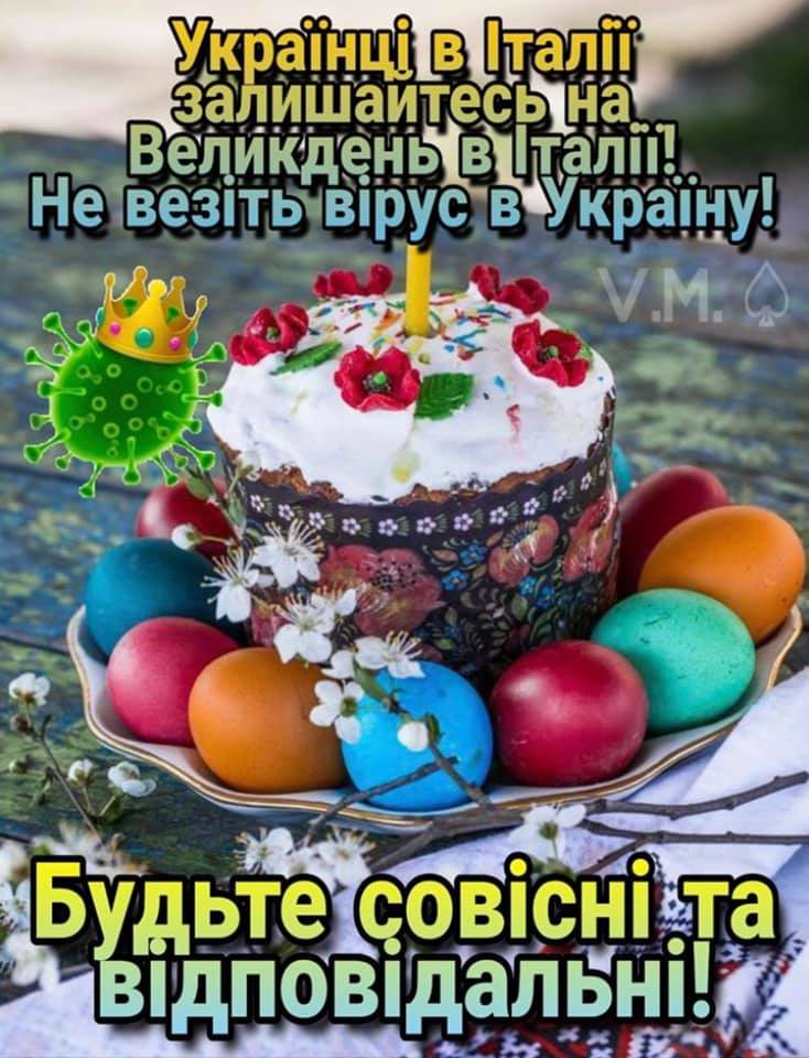 Тем временем, в группах украинцев в ЕС в соцсетях продолжают призывать не возвращаться в Украину, публикуют даже специальные картинки с паской и "коронавирусом".