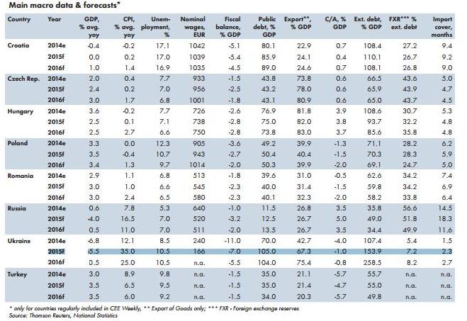 Австрійські фахівці очікують, що за підсумками 2015 року ВВП України скоротиться на 5,5%, середньорічна інфляція складе 35%, дефіцит держфінансів становитиме 7% ВВП, а держборг зросте до 105% від ВВП.
