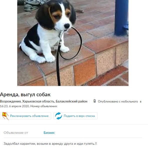 Но с 6 апреля, после ужесточение карантина в Украине, на досках объявлений в интернете резко появилось множество объявлений.