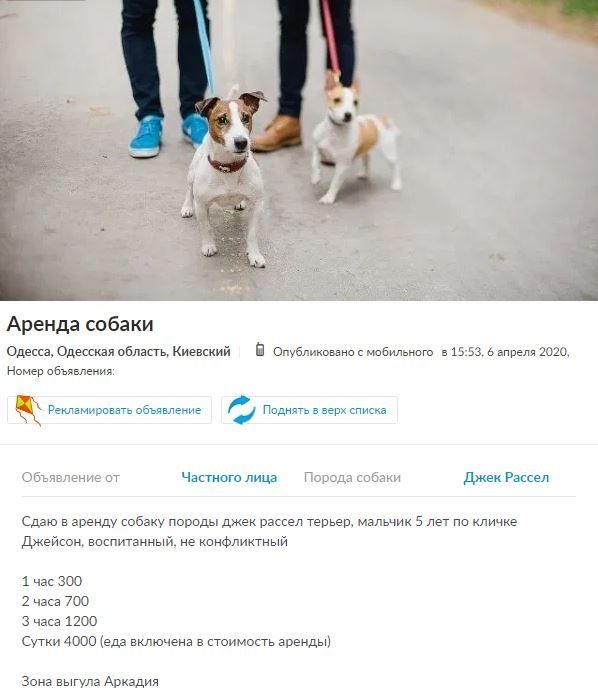 Предприимчивые украинцы не растерялись и начали массово сдавать в аренду своих питомцев желающим подышать чистым воздухом на природе. В соцсети даже появилось название для людей, готовый сдать собак в аренду во время карантина - карантье.