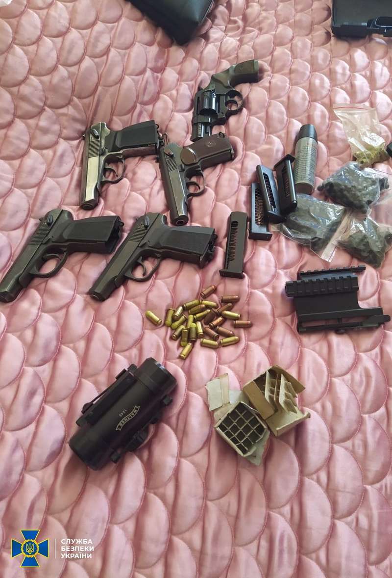 Під час обшуків за місцями розташування підпільних майстерень і в помешканнях фігурантів співробітники СБУ вилучили автомат Калашникова, підствольний гранатомет ГП-25, вісім пістолетів, два револьвери, 1100 набої різного калібру, компоненти засобів ураження та велику кількість магазинів до автоматів і пістолетів. Також виявлено обладнання й інструменти для виготовлення вогнепальної зброї та боєприпасів.