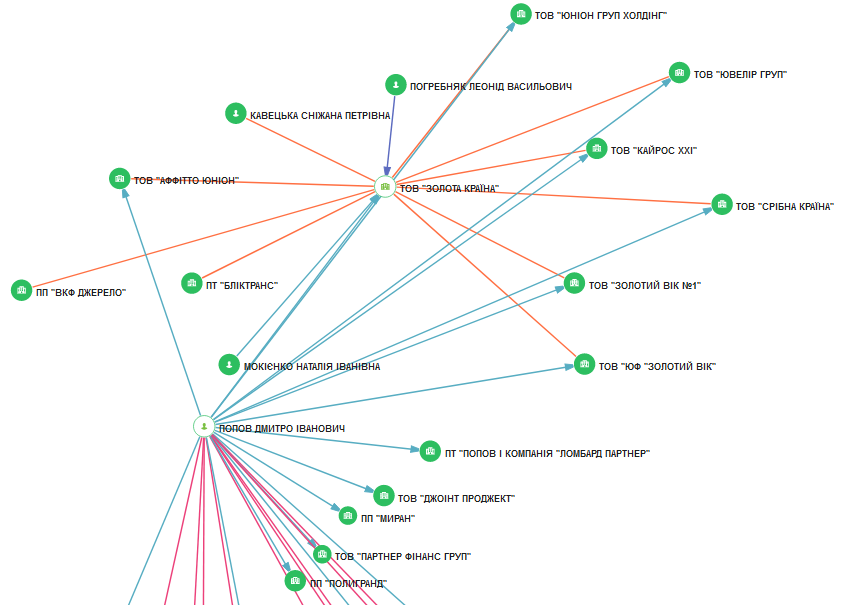 Бенефициарами связаны между собой: ООО «Ювелир груп» (код 43567455), ООО «Золотой век №1», ООО «ЮФ «Золотой век», ООО «Серебряная страна», ООО «Золотая страна», ООО «Кайрос ХХІ», ООО «Юнион груп холдинг».