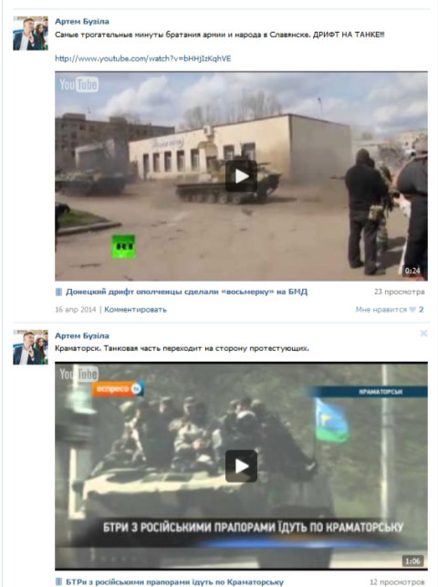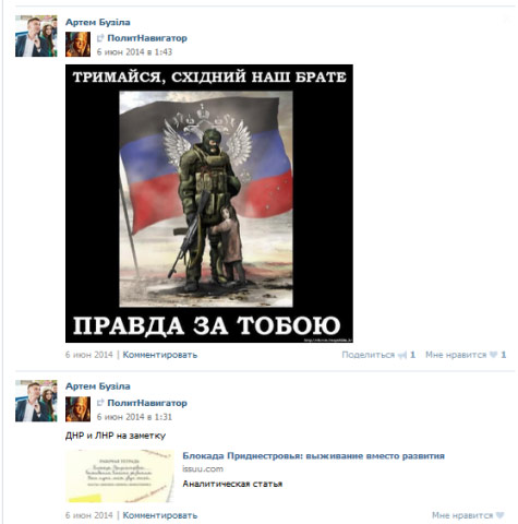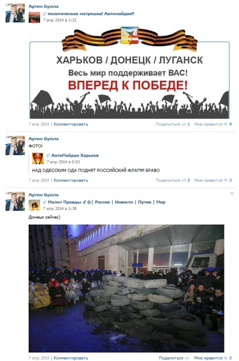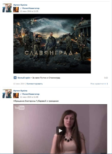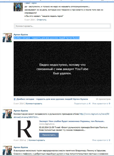 А также — постами о Гиркине, «новороссии», с женой Губарева, и т.п.: