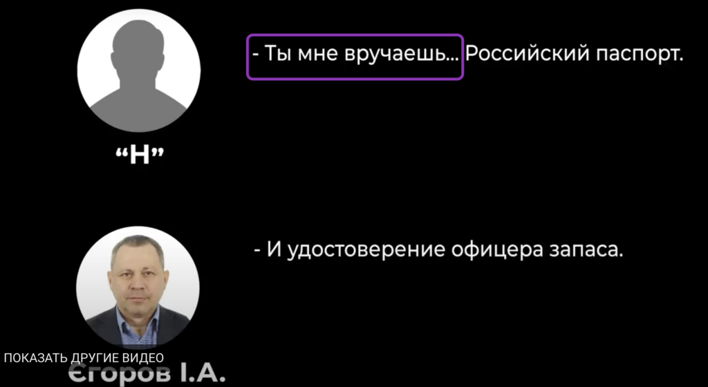 В опубликованных записях нет ни слова о том, что Валерий Шайтанов по итогам своей работы на «ФСБ» получит паспорт и пенсию РФ. Речь идет о том, что именно «Н» станет гражданином РФ и пенсионером Вооруженных сил РФ.