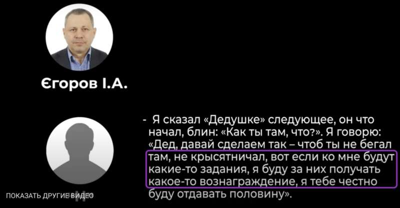 В разговоре Игоря Егорова и «Н», последний акцентирует внимание на том, что именно ОН будет получать задания от ФСБ, вознаграждение за их исполнение и уже потом часть вознаграждения передавать «Деду». Хотя до конца и не ясно какого «Деда» конкретно он имел в виду.