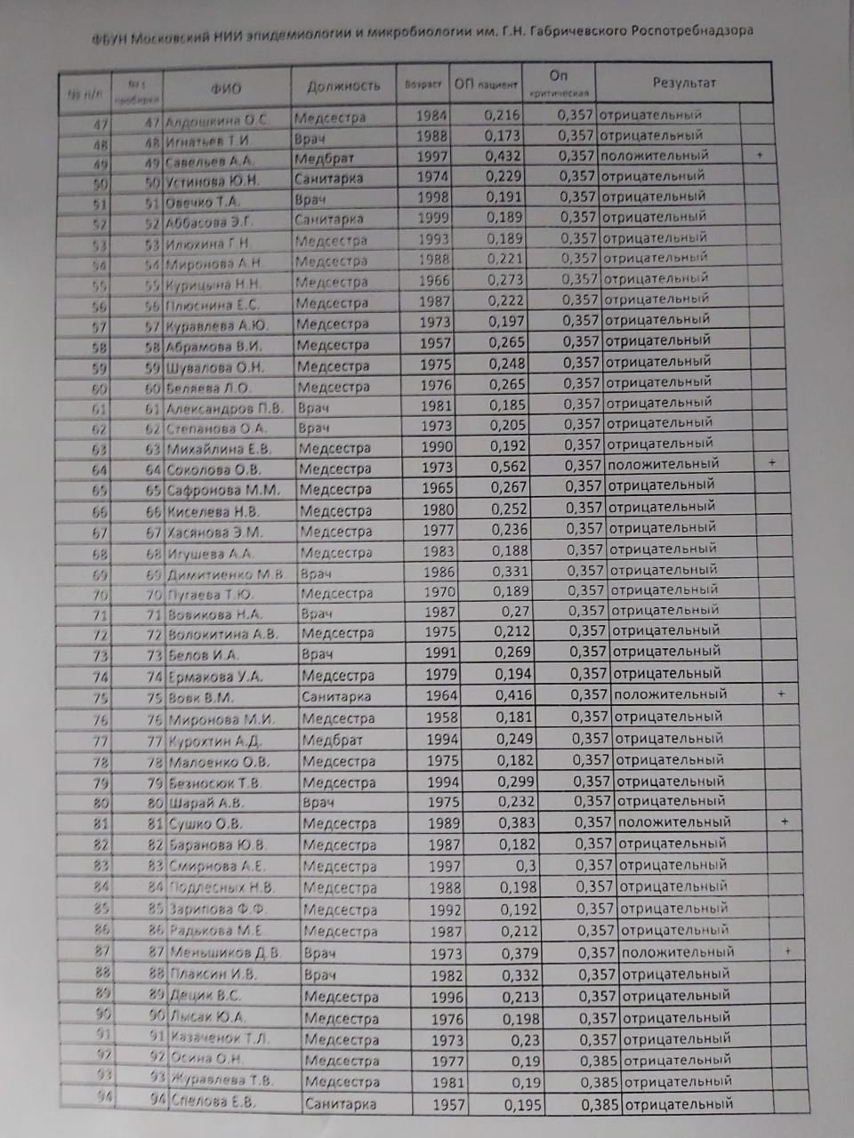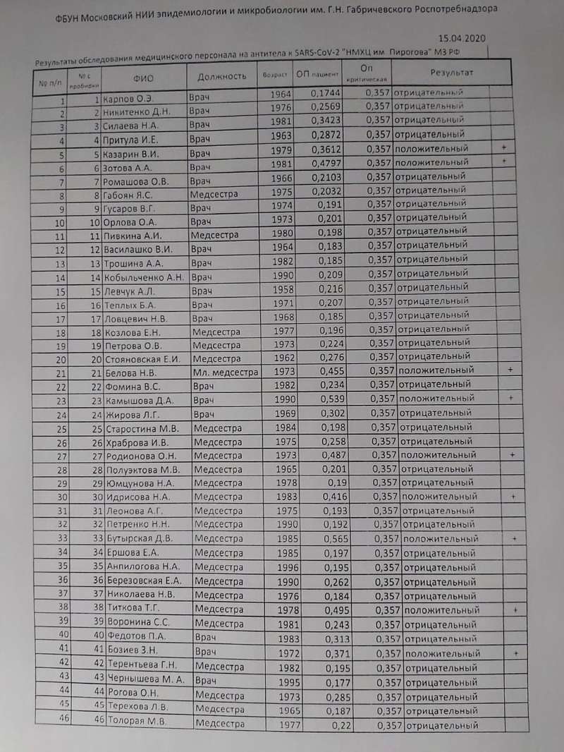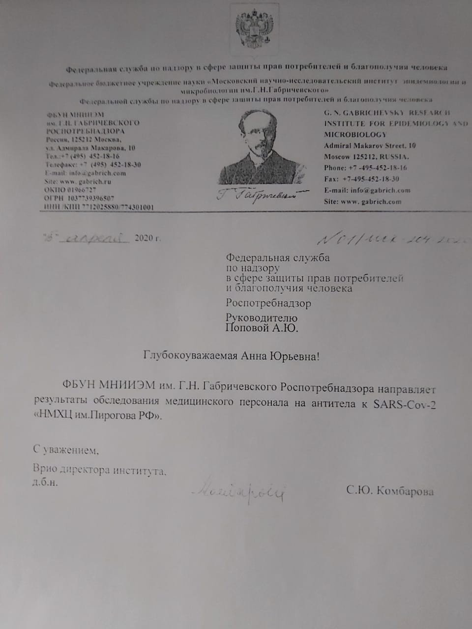 «Мы уже приносили сюда официальные документы, которые подтверждают, что коронавирус обнаружен у 5 врачей, 8 медсестер и 2 санитарок Московского научно-исследовательского института эпидемиологии и микробиологии им. Г. Н. Габричевского – главного, так сказать, учреждения в столице по вирусам и вакцинам», – добавила блогер.
