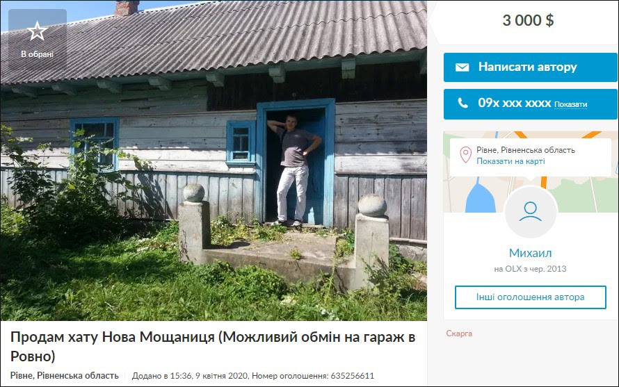 Для сравнения, на сайте объявлений ОLХ чуть больше просят за домик в селе в 40 километрах от областного центра, или же поменяют его на гараж в Ровно. Это уже больше напоминает реальность.