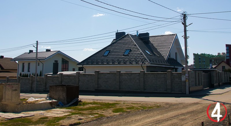 Впоследствии соседний участок стал собственностью Ольги Осипчук и простаивать он тоже не стал. Теперь за одним высоким забором здесь находятся два двухэтажных дома.