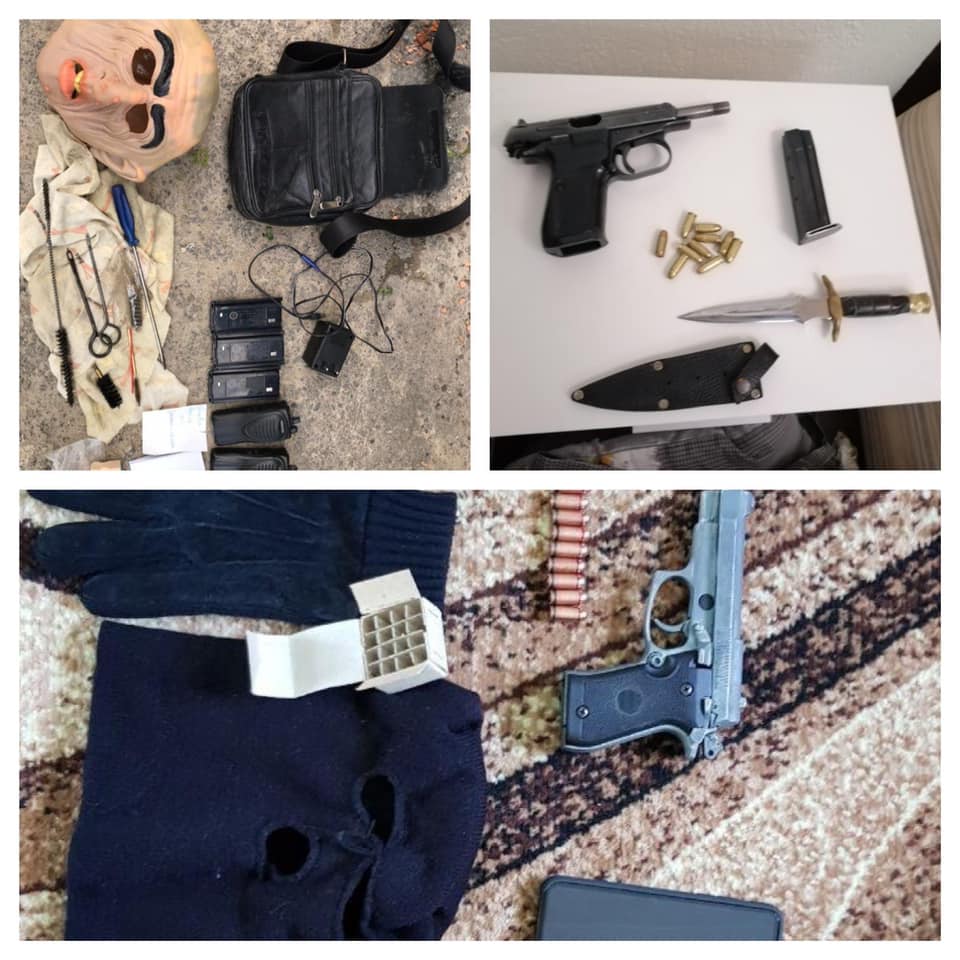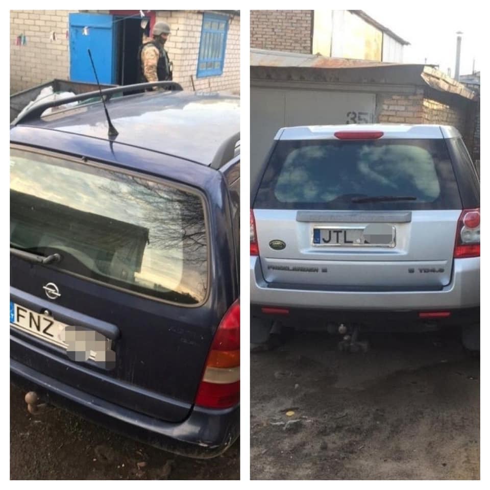 Во время обысков было изъято огнестрельное незарегистрированное оружие, патроны, ножи, маски, парики, радиостанции, бинокли, а также различные номерные автомобильные знаки и две «евробляхи» — Land Rover и Opel.