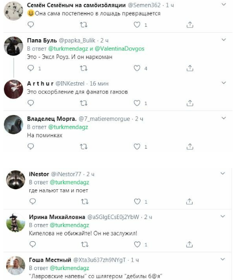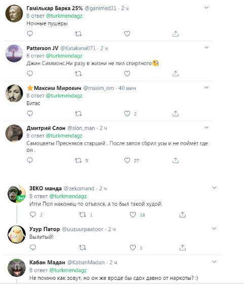 «Джин Симмонс.Ни разу в жизни не пил спиртного», «Витас», » Самоцветы, Пресняков старший. После запоя сбрил усы и не поймёт где он», «Как же постарел Оззи Озборн!», «Пострашнел…», «Это Мерлин Мэнсон без грима», «Это же Машка грязная башка!», «Игги Поп наконец-то отъелся, а то был такой худой», «На подпевках подрабатывает..ну и основная работа за лошадью ходить», «Она сама постепенно в лошадь превращается», «Линдеманн покрасился?», «Это солистка самой бездарной группы всех времен и народов….», «Пускай кокса нюхнет, а то так не узнать…», «Да это же Маша, Захарова, из МИДа! Она там песни поет и приплясовывает», «Где нальют там и поет», «Кипелова не обижайте! Он не заслужил!», — шутят они в комментариях.