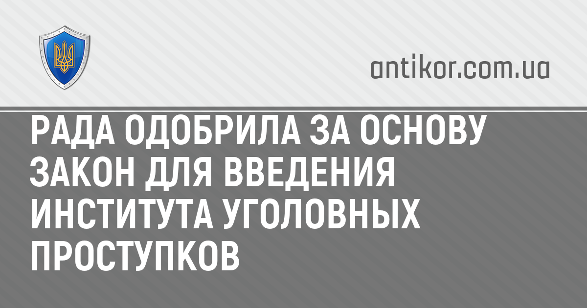 Верховная рада приняла за основу в первом чтении законопроект №3314 "О внесении изменений в некоторые законодательные акты Украины в связи с принятием ЗУ "О внесении изменений в некоторые законодательные акты Украины об упрощении досудебного расследования отдельных категорий уголовных правонарушений"для введения института уголовных проступков.