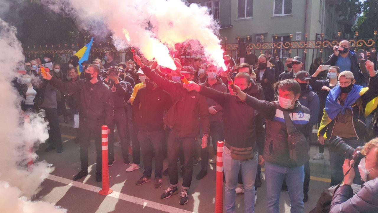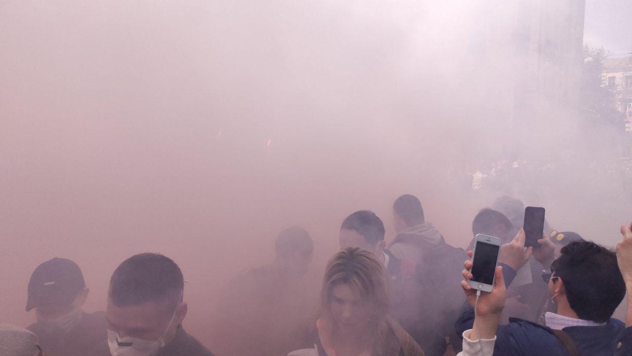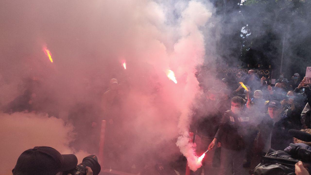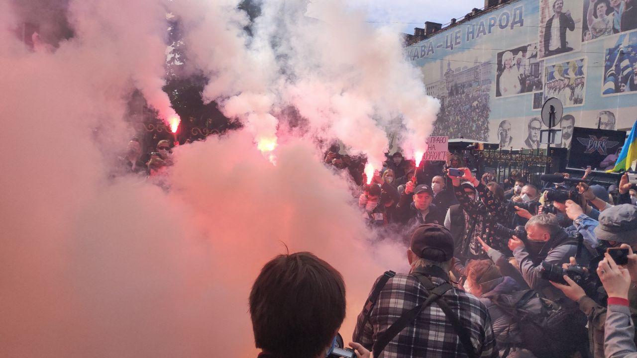 Під СБУ, куди викликали Стерненка, запалили фаєри і петарди