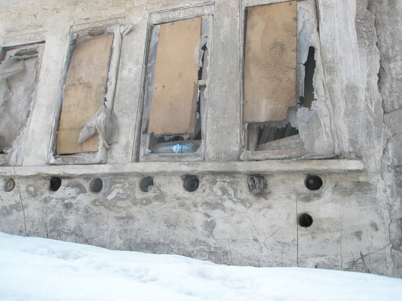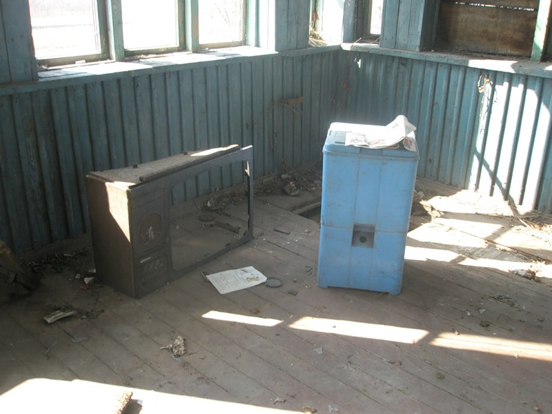 У самого края поселка нам встретился нежилой двухэтажный барак. Среди окружавших его низкорослых домишек он казался великаном, и потому пройти мимо было трудно. Окна барака смотрели в посадку и степь. Половина квартир была выпотрошена, половина надежно заперта. Возможно, в этом доме еще остались жильцы, но нам никто так и не встретился.
