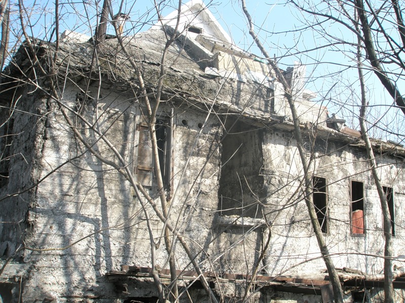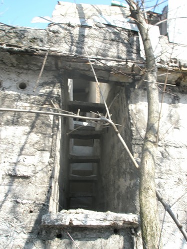 Двери квартир второго этажа были крепко заперты. Возможно, их хозяева еще жили в этом жутком полумертвом доме. Ломиться туда мы не стали, а тихо покинули помещение и отправились дальше.