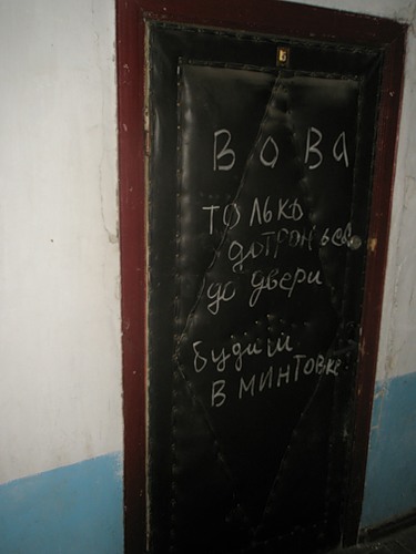 Вова, к которому сие послание было обращено, очевидно проживал по соседству. Из-за двери мы слышали чье-то пьяное мычание, возникла даже шальная мысль ввалиться в берлогу и взять у хозяина интервью, но в конце-концов мы благоразумно решили, что это будет слишком контркультурно, и оставили обитателя барака наедине с собой.