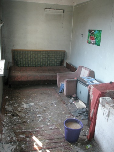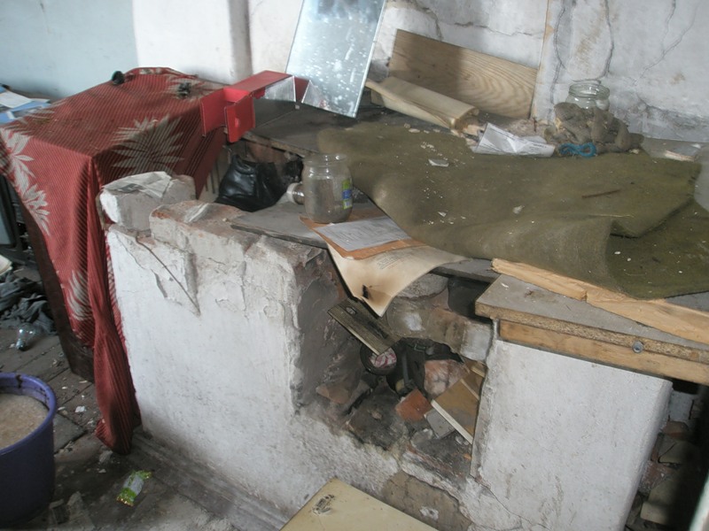 Интерьер комнат пришлось снимать через окна. Выглядел дом изнутри, как погреб, и нечто наподобие бетонного дивана действительно нашлось. Правда, скорее это лежбище напоминало шконку.