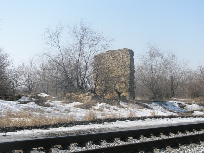 У железной дороги одиноко высилась каменная стена, по всей видимости оставшаяся от какого-то давнего здания. Возможно, тут была старая шахта, не знаю.