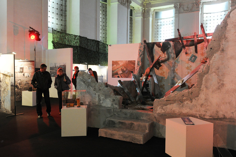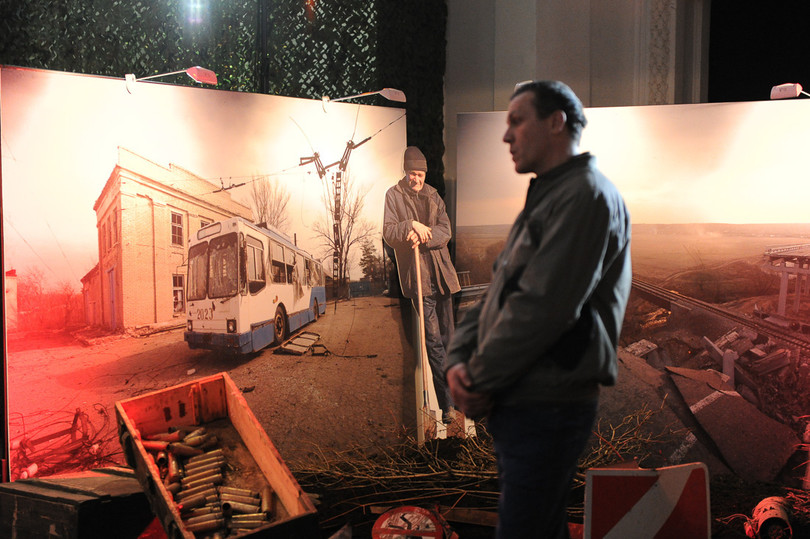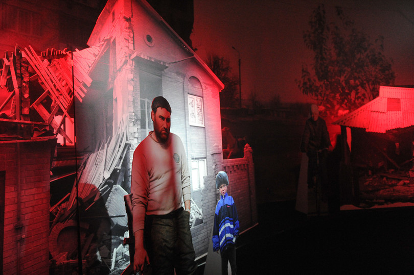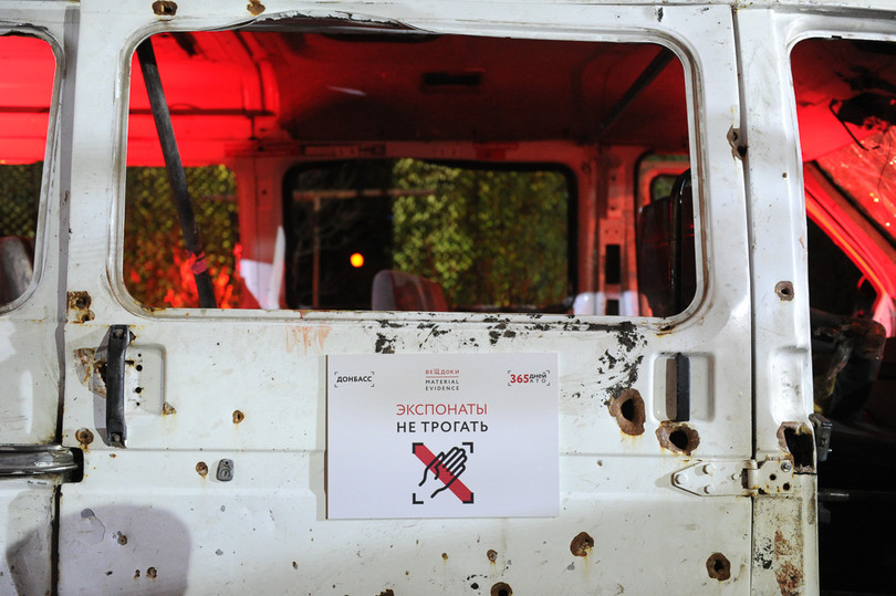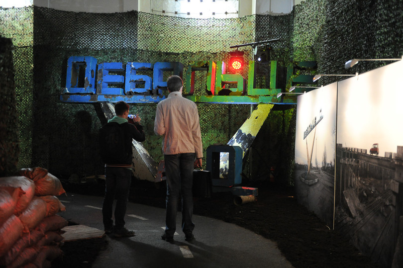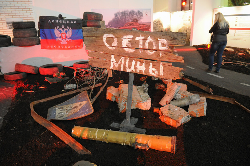 В Москве на ВДНХ, в павильоне Украина открылась выставка Вещественные доказательства. Донбасс. 365 дней, где якобы воссоздаются сюжеты из зоны конфликта в восточной части страны.