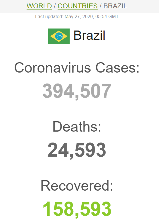 Ежедневный уровень смертности от COVID-19 в Бразилии стал самым высоким в мире, однако в Университете Вашингтона предупреждают, что общее число погибших в стране может увеличиться в пять раз – до 125 тысяч к началу августа.
