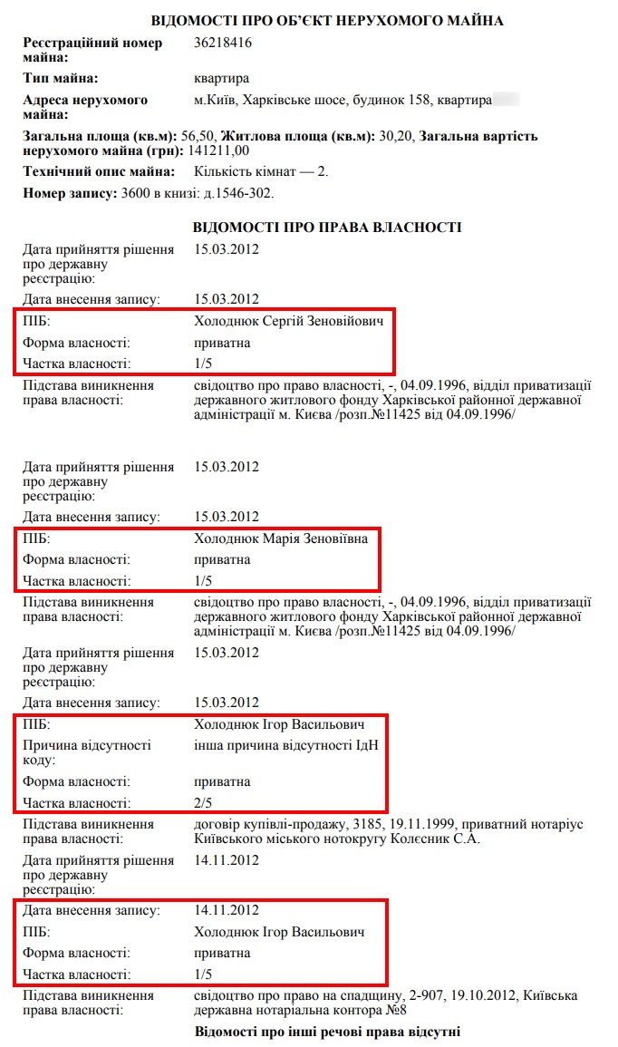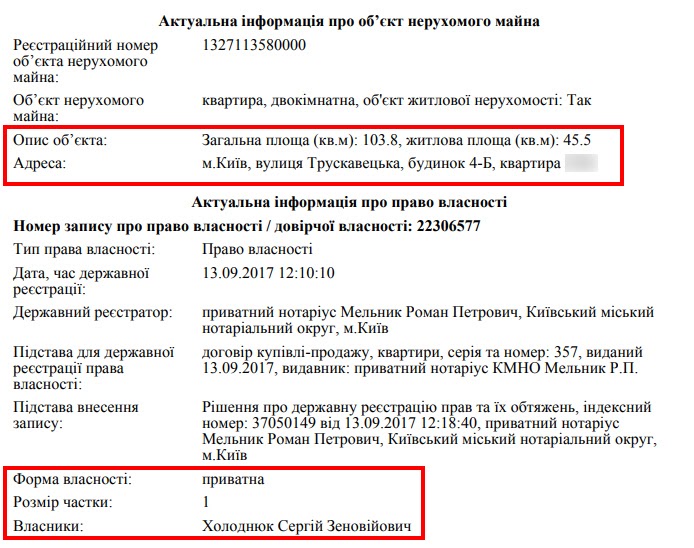 Подавляющее большинство имущества, которое есть в распоряжении семьи Холоднюка, появилось еще до того, как он стал получать большую зарплату, несоразмерную с тем, что имеют его подопечные. Также возникает много вопросов относительно происхождения имущества, записанного на Надежду Холоднюк, которая не владеет бизнесом, но смогла потратить сумму, сравнимую разве что с бюджетом территориального управления Государственной судебной администрации.